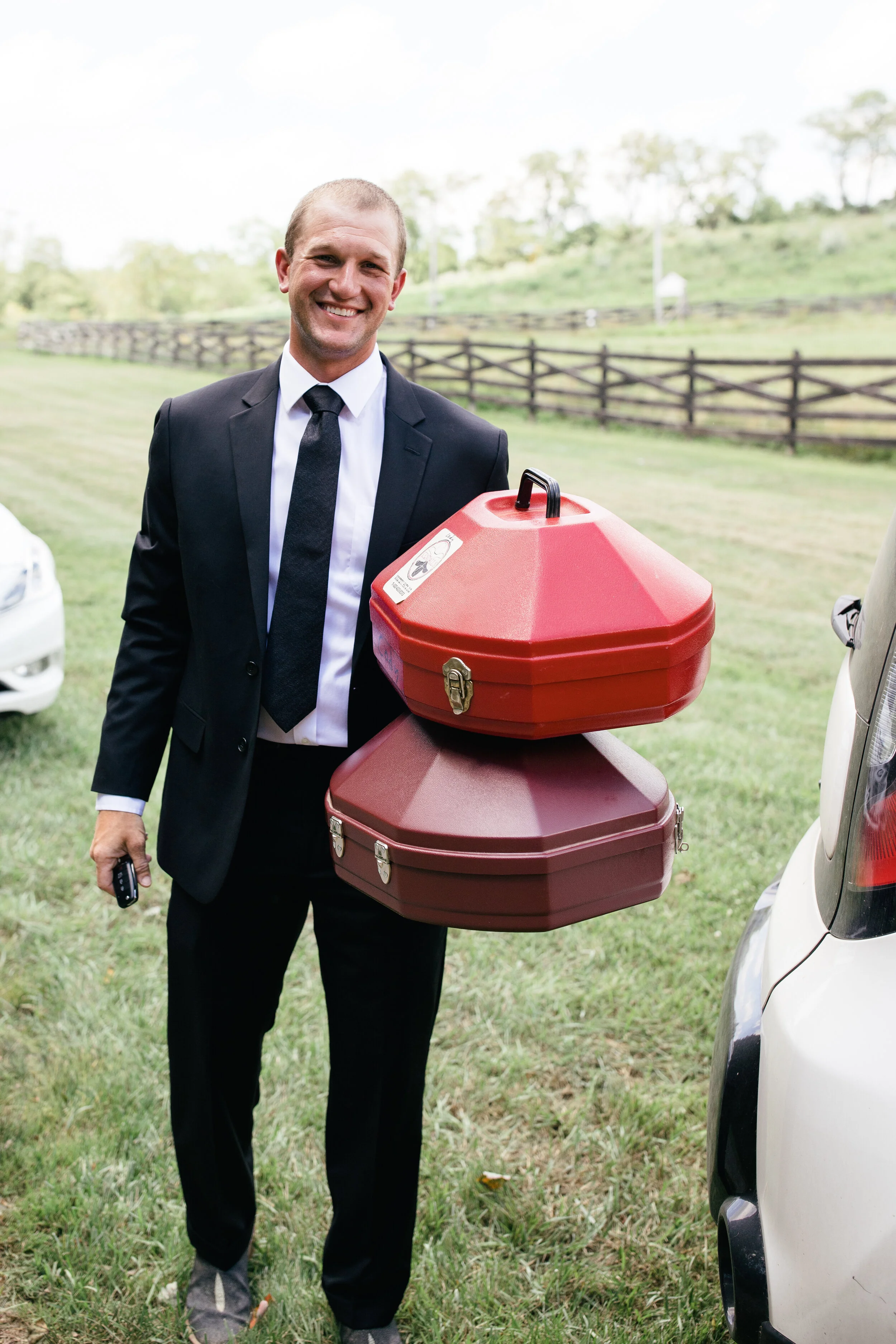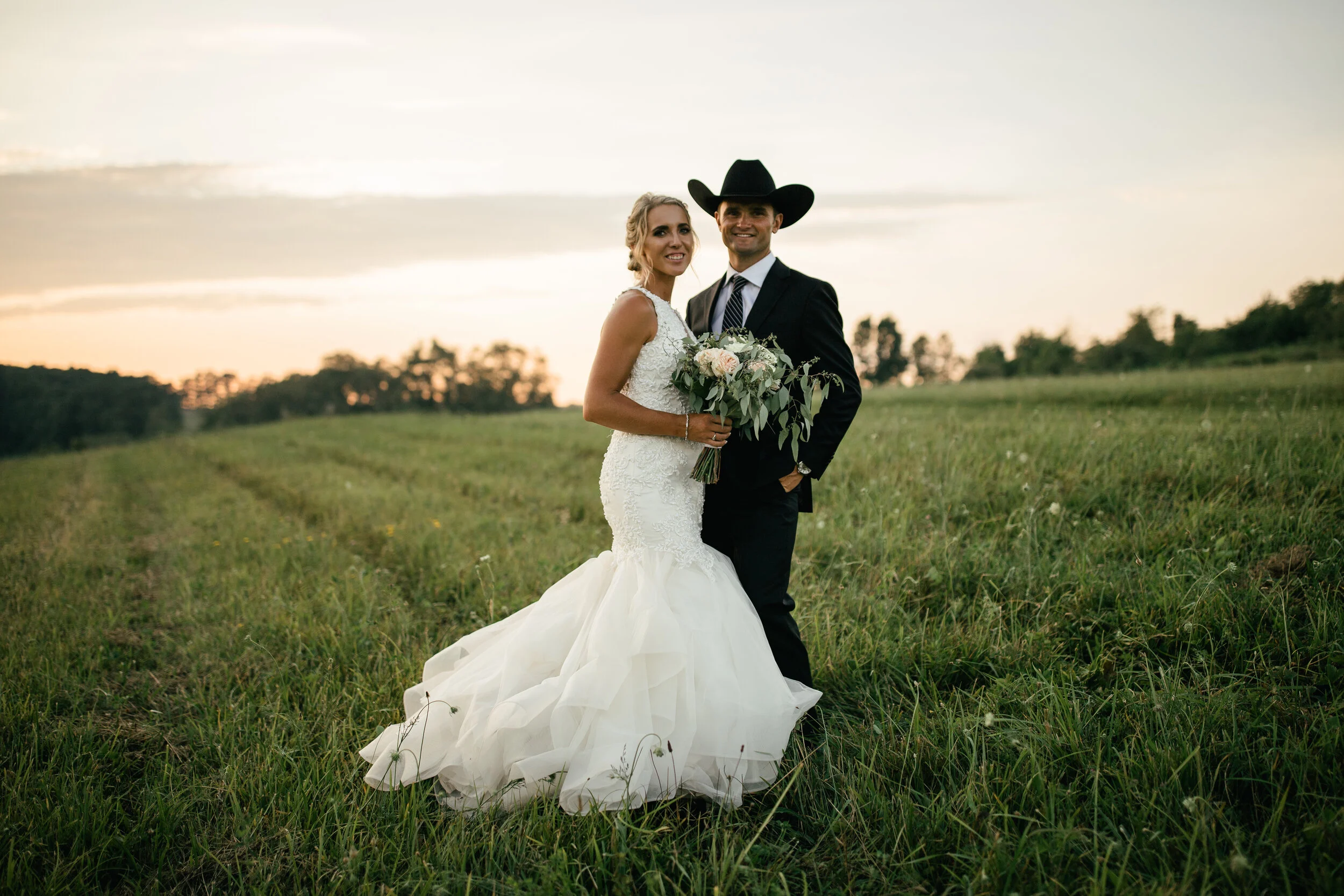 On Friday, July 19, 2019, Kelby and Kaitlin exchanged their vows in front of their closest family and friends — who came from across the country and across the pond to celebrate them — at The Hayloft, a beautiful wedding venue located in Rockwood, Pennsylvania. Their wedding happened to be on the hottest day of the year in western Pennsylvania, but that didn’t stop them or their guests from celebrating BIG! After their outdoor ceremony under cloud-speckled blue skies, Polly — the beer donkey — served their guests some brews and got the party started. After dinner provided by The Chuck Wagon Restaurant, everyone flooded to the dance floor. While their family and friend’s danced the night away, we snuck away for an amazing sunset overlooking the farm. The result: Some of my favorite wedding photos — ever.